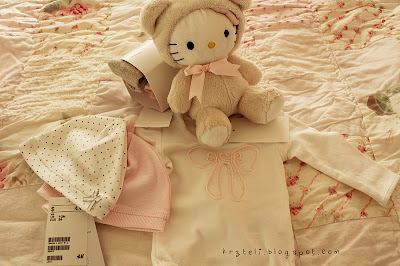 Yesterday, I just gave this very cute baby set (from H&M) for my friend's little baby girl and I opened it for her so I know I'm safe ^_~. Aint this cute?